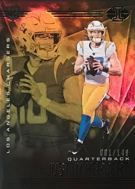 The Justin Herbert 2020 Illusions #7 Trophy Collection Yellow /149 Rookie card in Raw condition has not changed in price in the last 30 days and was last sold for $11.50 .