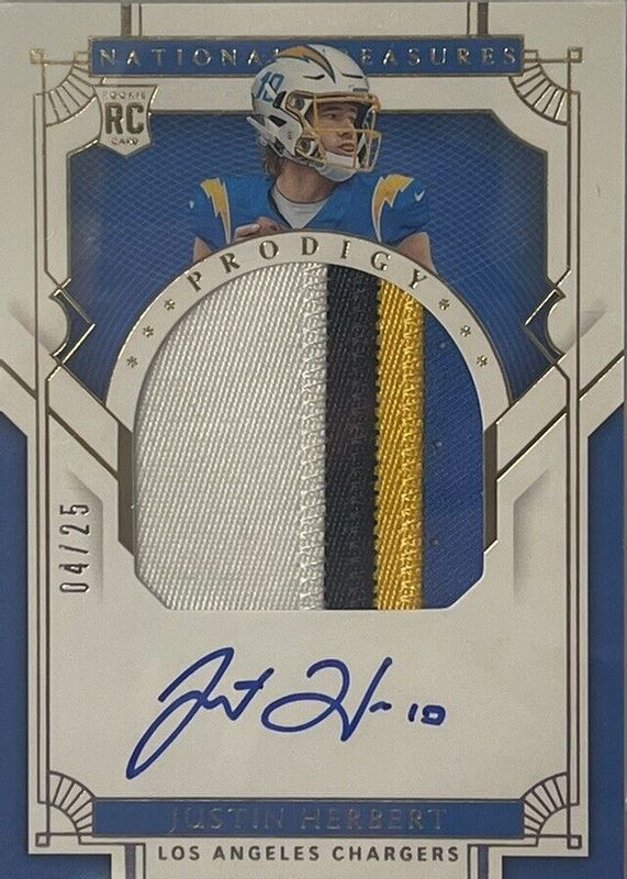 Justin Herbert 2020 National Treasures #PPA-JH Prodigy Patch Autographs - Gold /25 Rookie RAW Price Guide