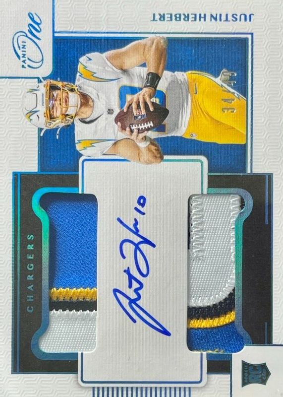 Justin Herbert 2020 One #33 Rookie Dual Patch Auto - Blue (/49) RAW Price Guide