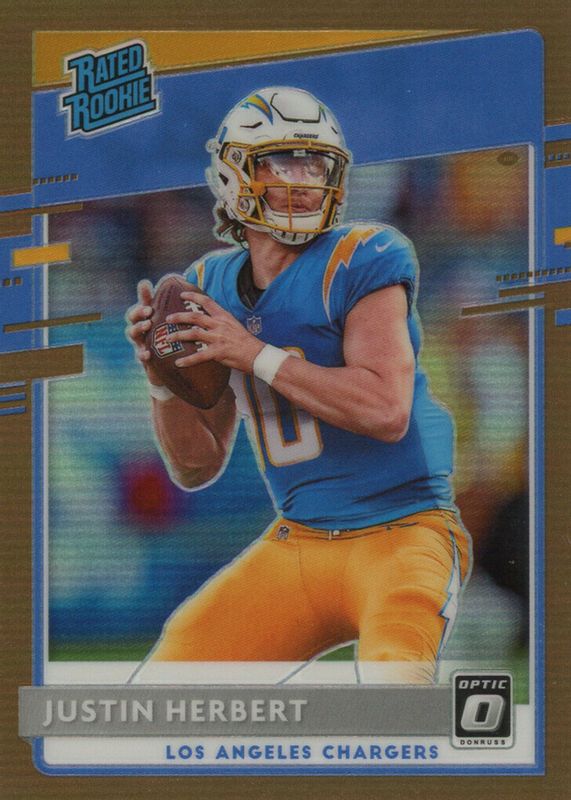 The Justin Herbert 2020 Optic #153 Bronze Rookie card in Raw condition has moved down -$9.00 (-18.4%) in the last 30 days and was last sold for $40.00 .