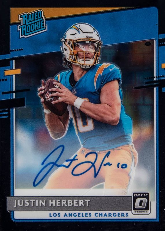 The Justin Herbert 2020 Optic #153 Rated Rookie Autographs - Black Pandora /25 card in Raw condition has not changed in price in the last 30 days and was last sold for $2,850.00 .