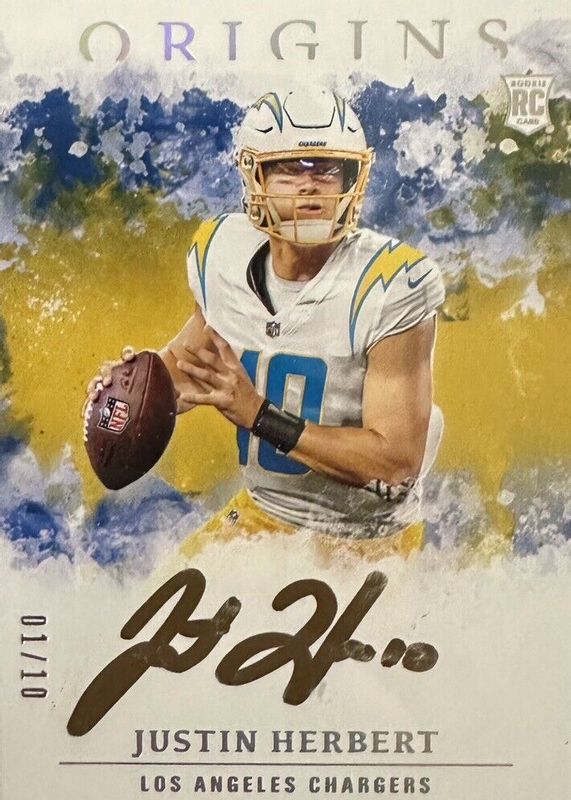 Justin Herbert 2020 Origins #RA-JH Rookie Autographs - Gold /10 RAW Price Guide