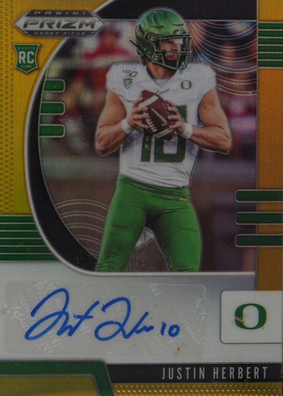 Auctions Ending Soon for Justin Herbert 2020 Prizm Draft Picks #102 Autographs - Gold /10 Rookie RAW
