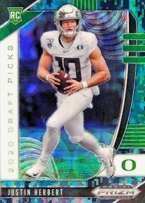 This card is 1 of 51 Justin Herbert's card variations in the 2020 Prizm Draft Picks set being tracked by Sports Card Investor, including Base, Blue, Green, Orange, and Pink Pulsar.