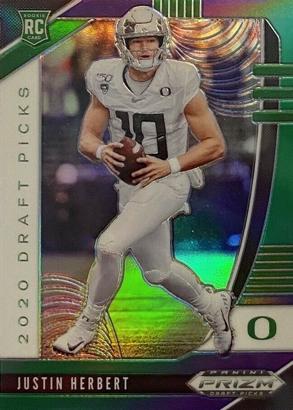 Justin Herbert 2020 Prizm Draft Picks #102 Purple & Green /199 Rookie RAW Price Guide