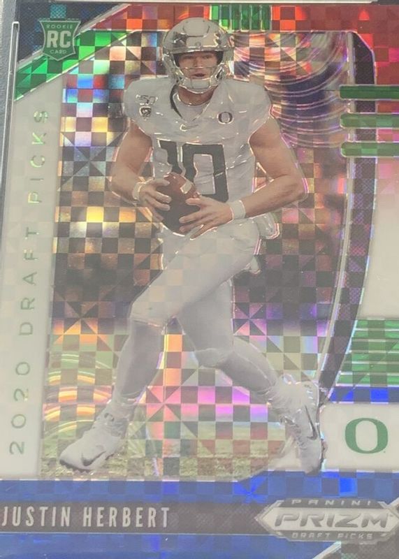 The Justin Herbert 2020 Prizm Draft Picks #102 Red White Blue /99 Rookie card in Raw condition has not changed in price in the last 30 days and was last sold for $117.50 .