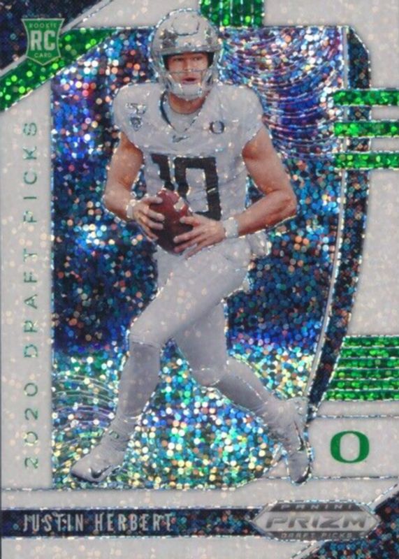 This card is 1 of 51 Justin Herbert's card variations in the 2020 Prizm Draft Picks set being tracked by Sports Card Investor, including Base, Blue, Green, Orange, and Pink Pulsar.