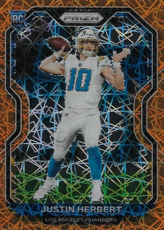 2020 Panini Prizm Justin Herbert RC Orange Lazer Prizm #325. Chargers (A)