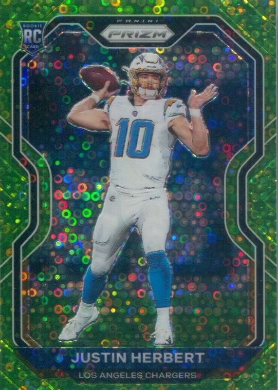 Justin Herbert 2020 Prizm #325 No Huddle Neon Green /5 Rookie RAW Price Guide
