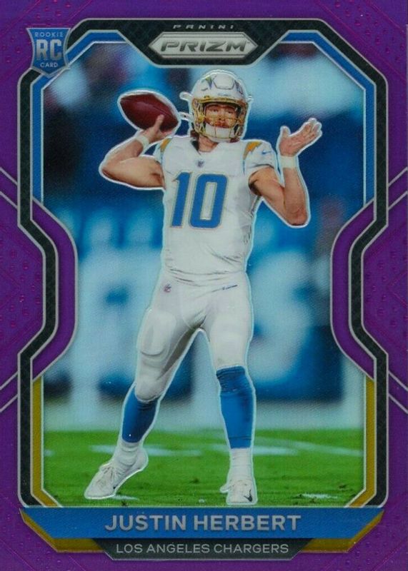 JUSTIN HERBERT 2020 Panini Prizm 325 Purple Prizm RC Rookie 77/125 Chargers