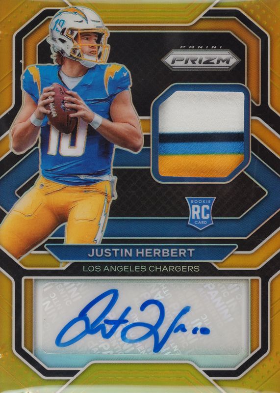 Justin Herbert 2020 Prizm #39 Rookie Patch Auto - Gold /10 RAW Price Guide