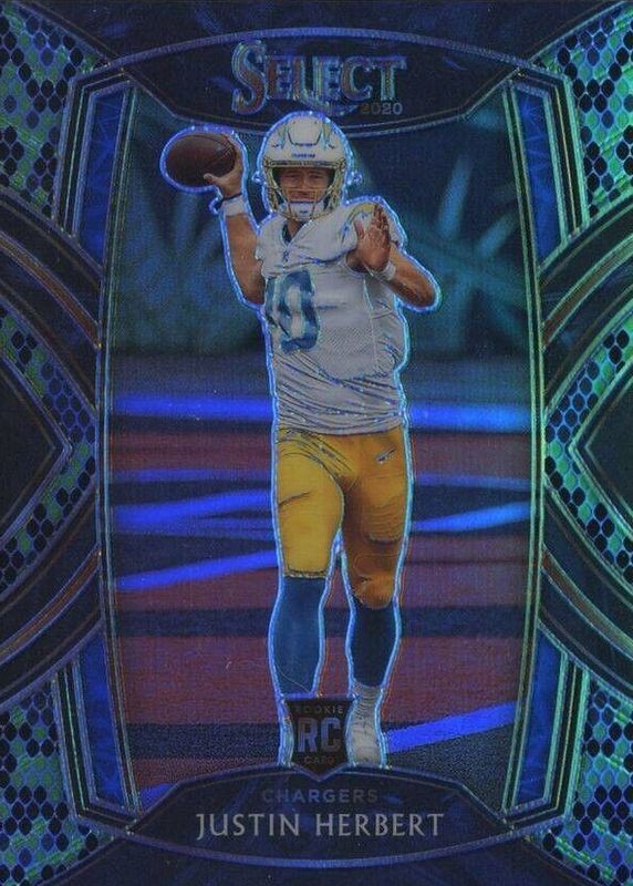 Justin Herbert 2020 Select #244 Club Level Green & Black Snakeskin /2 Rookie RAW Price Guide