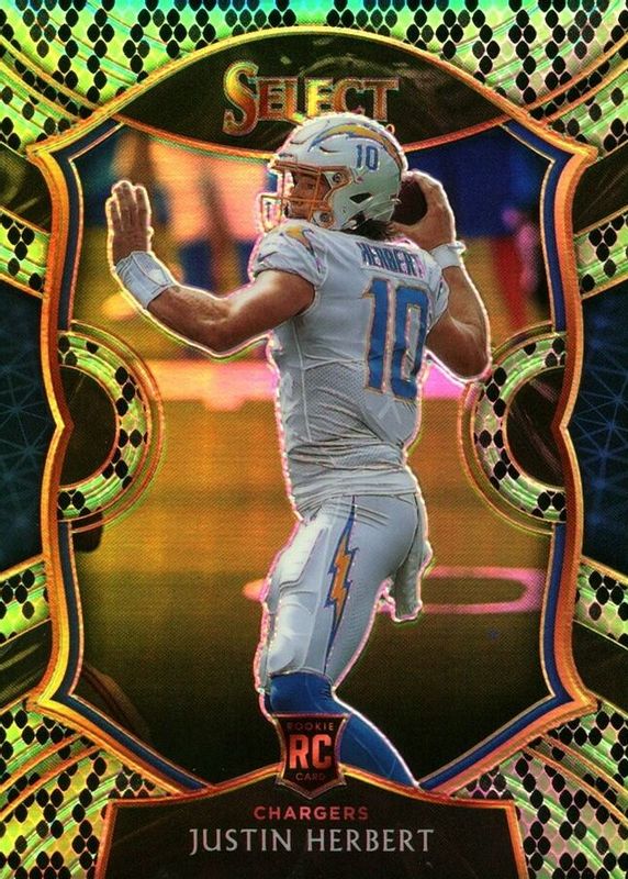 Justin Herbert 2020 Select #44 Concourse Green & Black Snakeskin /2 Rookie RAW Price Guide