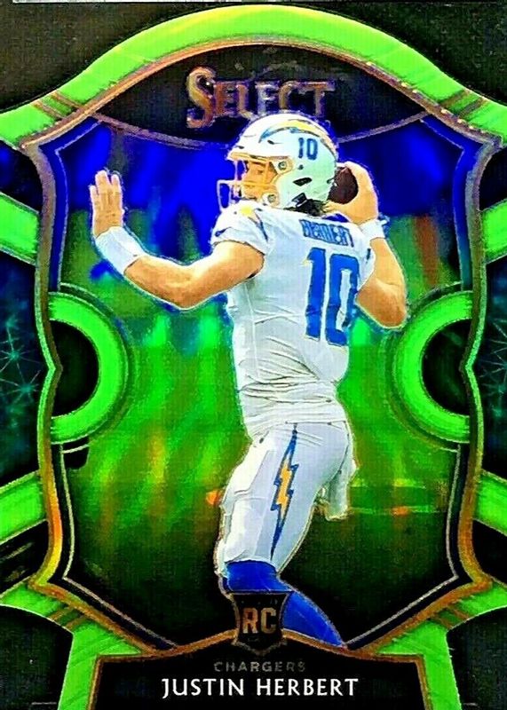 Justin Herbert 2020 Select #44 Concourse Neon Green Die-Cut Rookie RAW Price Guide
