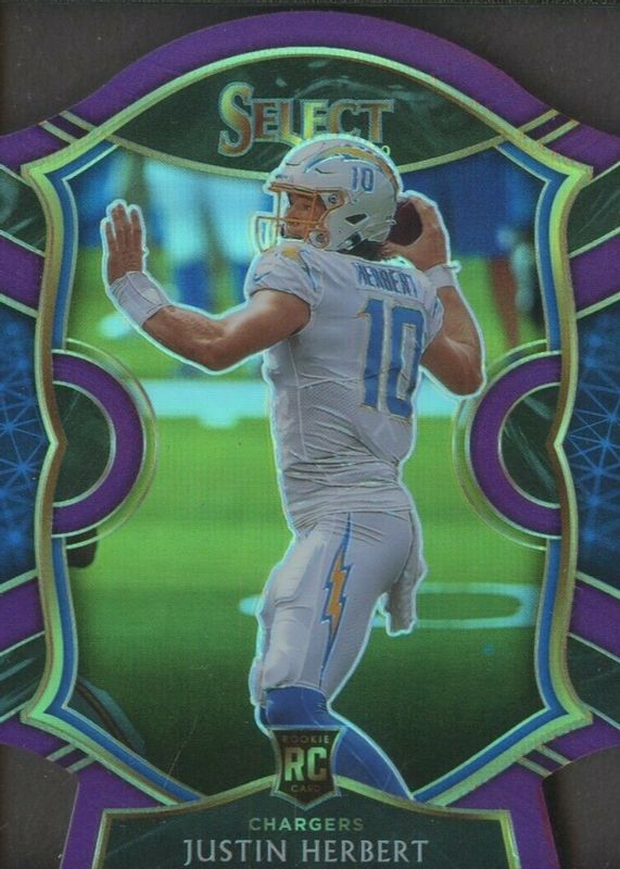 Justin Herbert 2020 Select #44 Concourse Purple Die-Cut Rookie RAW Price Guide