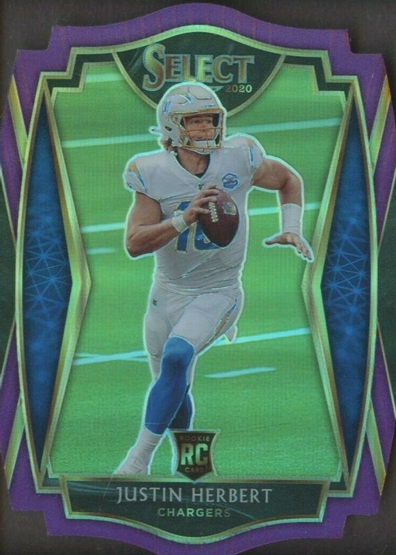 Justin Herbert 2020 Select #144 Premier Level Purple Die-Cut Rookie RAW Price Guide