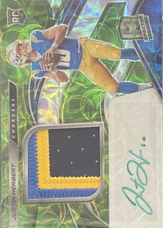 2020 Spectra Justin Herbert Green Prizm Autograph Rookie Patch Auto RC #/50