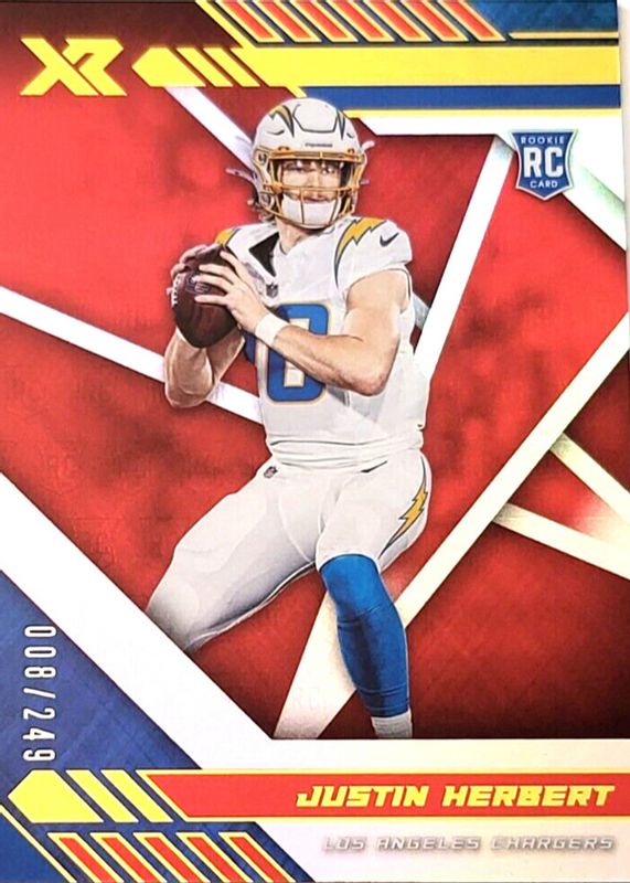 2020 PANINI XR FOOTBALL JUSTIN HERBERT #103 ROOKIE RED PARALLEL 105/249 CHARGERS
