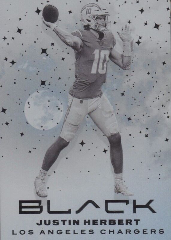 This card is 1 of 3 Justin Herbert's card variations in the 2021 Black set being tracked by Sports Card Investor, including ForceField /(SSP), and Regulators /(SSP).
