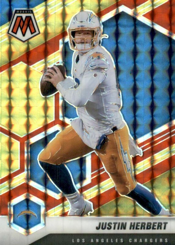 Auctions Ending Soon for Justin Herbert 2021 Mosaic #111 Choice Fusion Red & Yellow /80 RAW