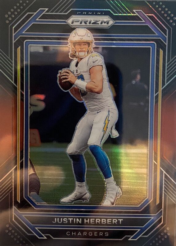 This card is 1 of 17 Justin Herbert's card variations in the 2022 Chronicles set being tracked by Sports Card Investor, including Prizm Black, Prizm Black - Silver, Prizm Black - Orange /75, Prizm Black - Green /49, and Prizm Black - Blue /25.