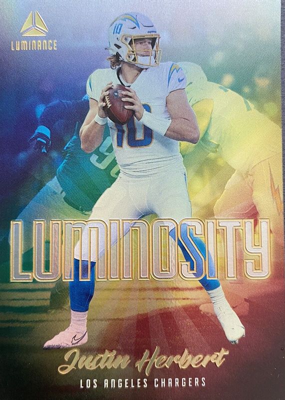 This card is 1 of 3 Justin Herbert's card variations in the 2022 Luminance set being tracked by Sports Card Investor, including Names of the Game /(SSP), and Vector /(SSP).