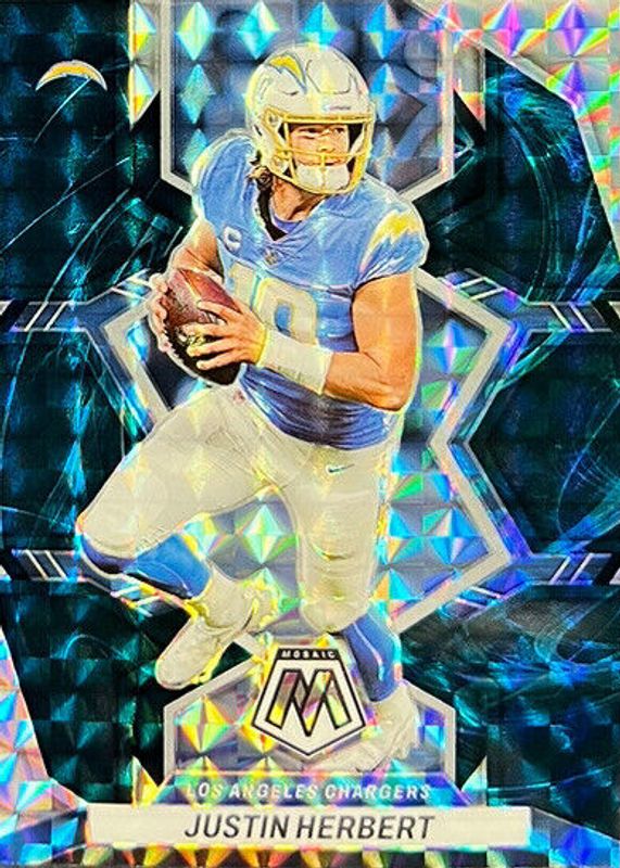 The Justin Herbert 2022 Mosaic #101 Genesis /(SSP) card in Raw condition has not changed in price in the last 30 days and was last sold for $53.51 .