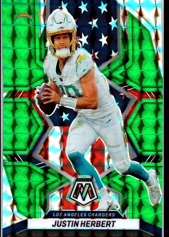 The Justin Herbert 2022 Mosaic #254 National Pride - Green card in Raw condition has not changed in price in the last 30 days and was last sold for $0.99 .