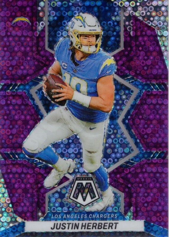 Justin Herbert 2022 Mosaic #101 No Huddle Purple /50 RAW Price Guide