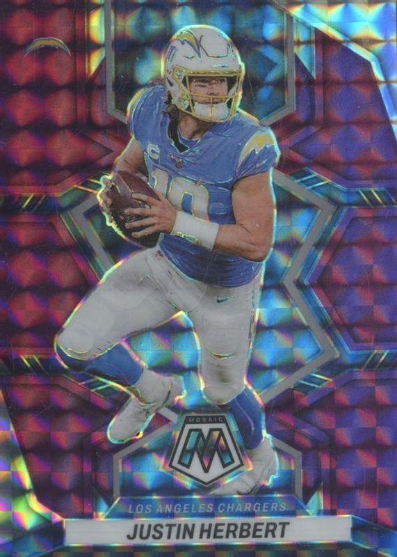 2022 Panini Mosaic Football Justin Herbert #101 Purple Prizm /49 LA Chargers