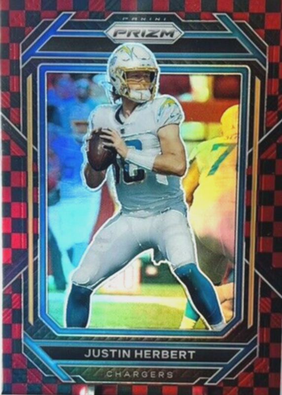 The Justin Herbert 2022 Prizm #149 Black & Red Checker /(SSP) card in Raw condition has not changed in price in the last 30 days and was last sold for $54.99 .