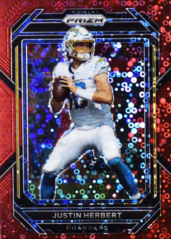 2022 Panini Prizm #149 Justin Herbert Red No Huddle #d /50 Los Angeles Chargers