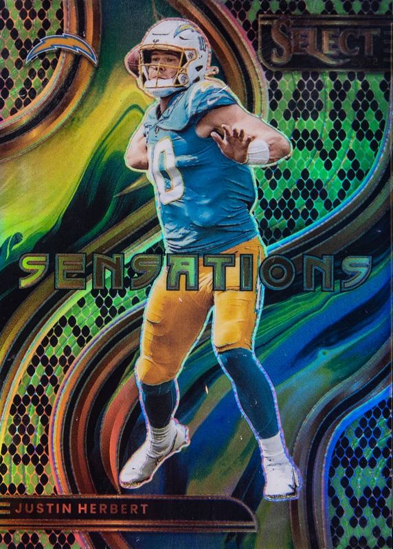 Justin Herbert 2022 Select #SEN-6 Sensations - Green & Black Snakeskin /2 RAW Price Guide