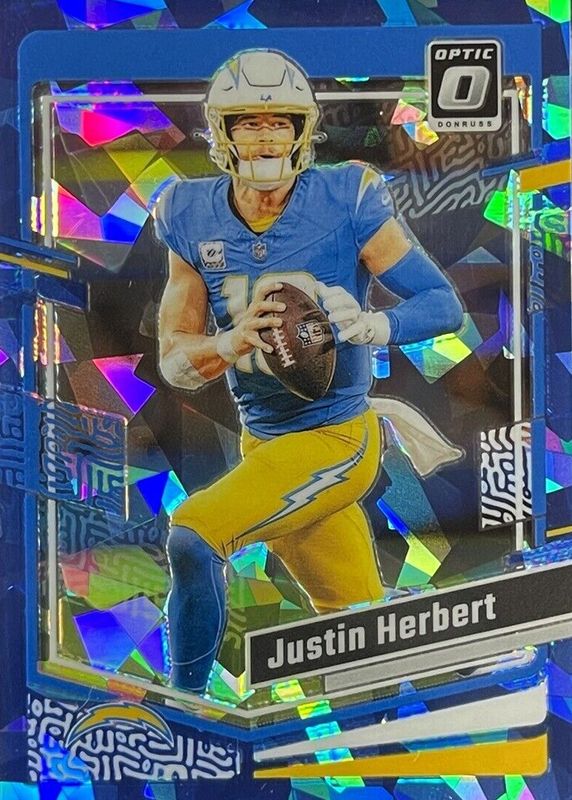 JUSTIN HERBERT 2023 PANINI DONRUSS OPTIC #104 BLUE CRACKED ICE 01/15 CHARGERS