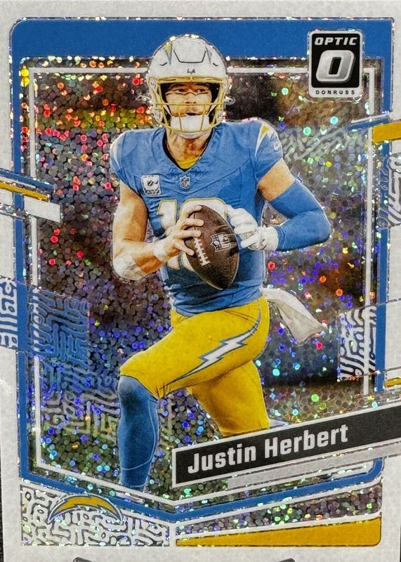 This card is 1 of 38 Justin Herbert's card variations in the 2023 Optic set being tracked by Sports Card Investor, including Wave /300, Aqua /299, Orange /249, Blue /199, and Flex /149.