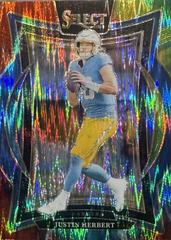 This card is 1 of 123 Justin Herbert's card variations in the 2024 Select set being tracked by Sports Card Investor, including Field Level Tri-Color /99, Field Level Blue /75, Field Level Dragon Scale /70, Club Level Cosmic /(SSP), and Club Level Tiger /(SSP).