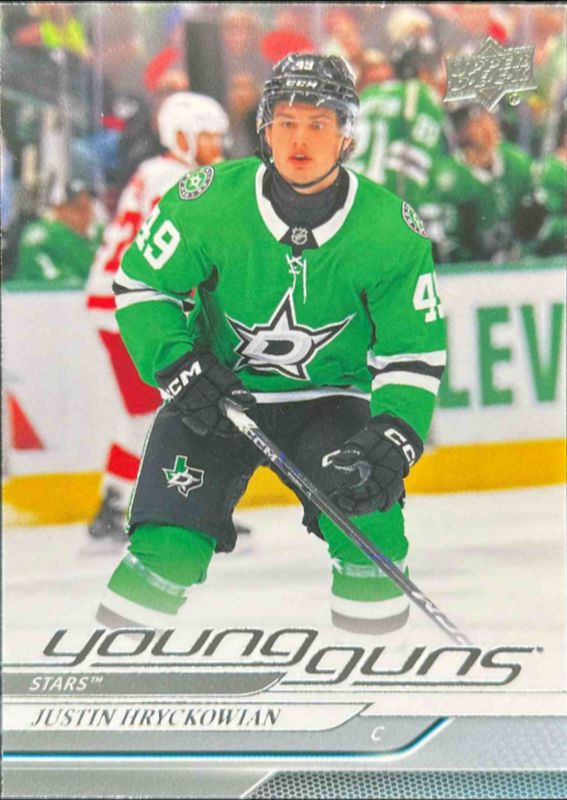 The Justin Hryckowian 2024 Upper Deck Extended Series #723 Base Rookie card is 1 of 27 Justin Hryckowian's card variations in the 2024 Upper Deck Extended Series set being tracked by Sports Card Investor, including Young Guns Base, Clear Cut, Outburst, Young Guns - Clear Cut, and Young Guns - Outburst Silver.