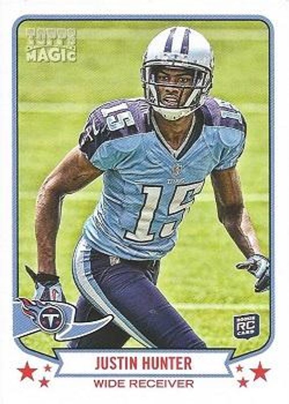 The Justin Hunter 2013 Topps Magic #155 Base Rookie card is 1 of 15 Justin Hunter's card variations in the 2013 Topps Magic set being tracked by Sports Card Investor, including Mini, Mini Black Border, Mini Blue Border, Mini Green Border, and Mini Orange Border.