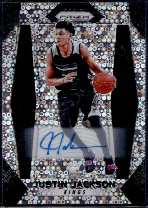 The Justin Jackson 2017 Prizm #27 Autographs - Fast Break Rookie card is 1 of 44 Justin Jackson's card variations in the 2017 Prizm set being tracked by Sports Card Investor, including Base, Fast Break, Green, Hyper, and Red White Blue.
