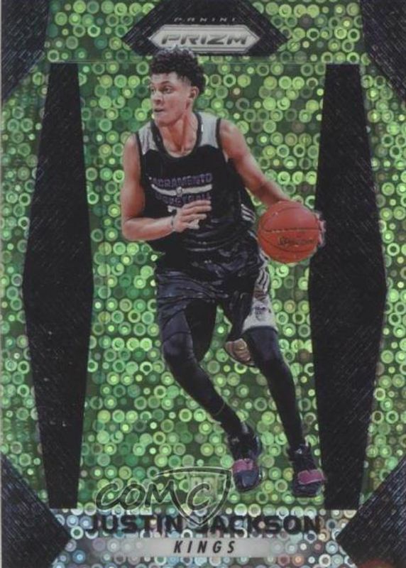 The Justin Jackson 2017 Prizm #27 Fast Break Neon Green /5 Rookie card in Raw condition has not changed in price in the last 30 days and was last sold for $19.49 .