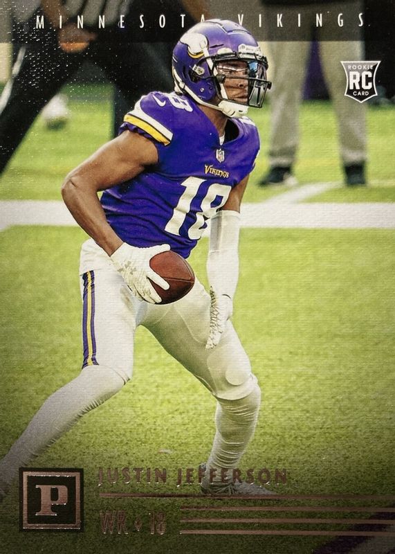 The Justin Jefferson 2020 Chronicles #PA-23 Panini Rookie card in Raw condition has moved up $0.26 (+26.3%) in the last 30 days and was last sold for $1.25 .