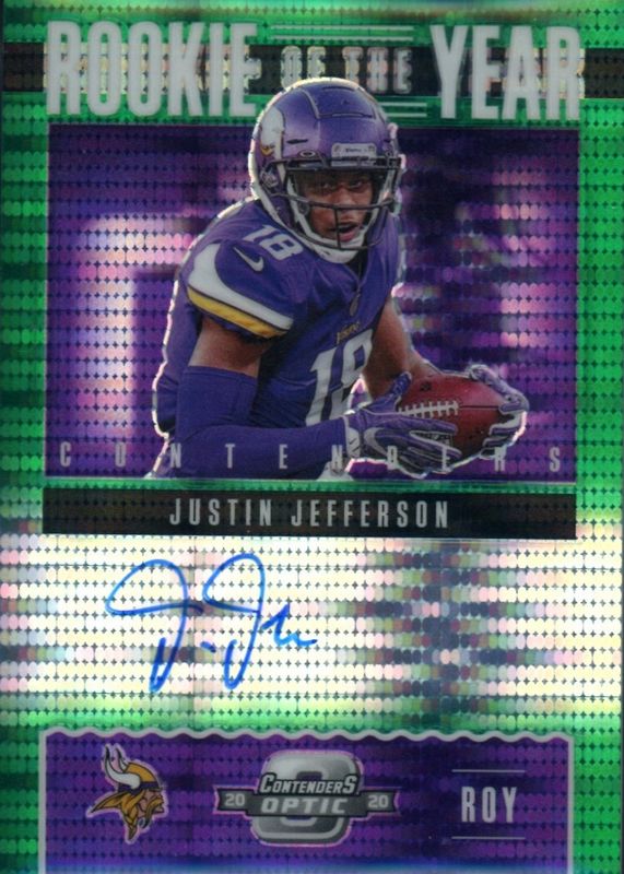Justin Jefferson 2020 Contenders Optic #ROY2 Rookie of the Year Contenders Autographs - Green Pulsar /27 RAW Price Guide