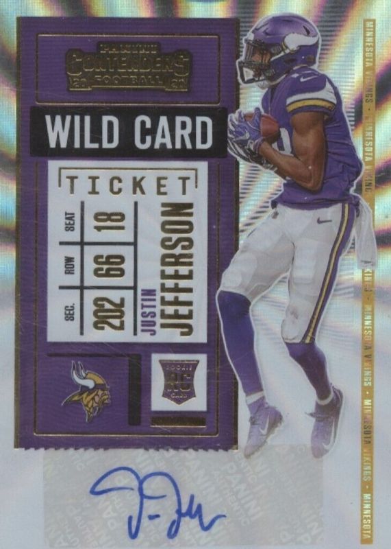 JUSTIN JEFFERSON 2020 PANINI CONTENDERS #109 ROOKIE TICKET WILD CARD RC AUTO SP
