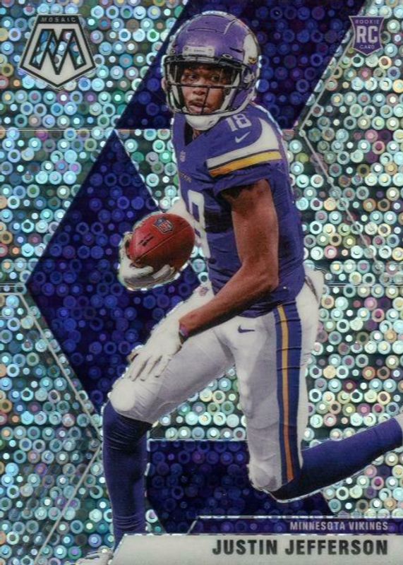 This card is 1 of 71 Justin Jefferson's card variations in the 2020 Mosaic set being tracked by Sports Card Investor, including Base, NFL Debut, Choice Red & Green, Green, and NFL Debut - Choice Red & Green.