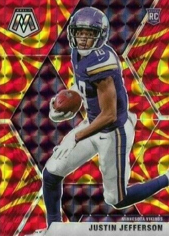 This card is 1 of 71 Justin Jefferson's card variations in the 2020 Mosaic set being tracked by Sports Card Investor, including Base, NFL Debut, Choice Red & Green, Green, and NFL Debut - Choice Red & Green.