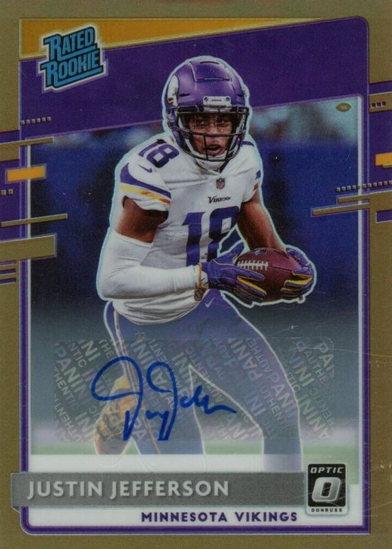 The Justin Jefferson 2020 Optic #163 Rated Rookie Autographs - Bronze card in Raw condition has not changed in price in the last 30 days and was last sold for $275.00 .