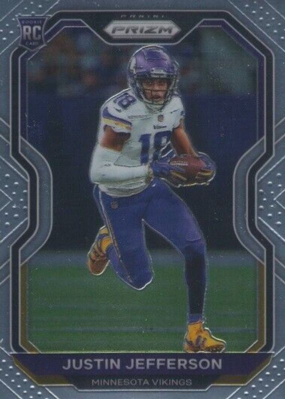 The Justin Jefferson 2020 Prizm #398 Base Rookie card in Raw condition has moved down -$3.07 (-51.2%) in the last 30 days and was last sold for $2.93 .