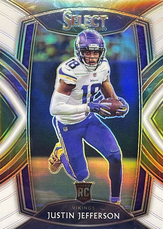 This card is 1 of 171 Justin Jefferson's card variations in the 2020 Select set being tracked by Sports Card Investor, including Club Level, Concourse, Field Level, Premier Level, and Club Level Blue Die-Cut.