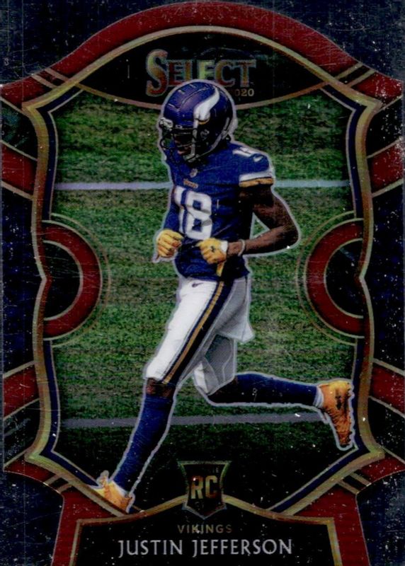 The Justin Jefferson 2020 Select #61 Concourse Red Die-Cut Rookie card in Raw condition has moved up $8.88 (+59.2%) in the last 30 days and was last sold for $23.87 .