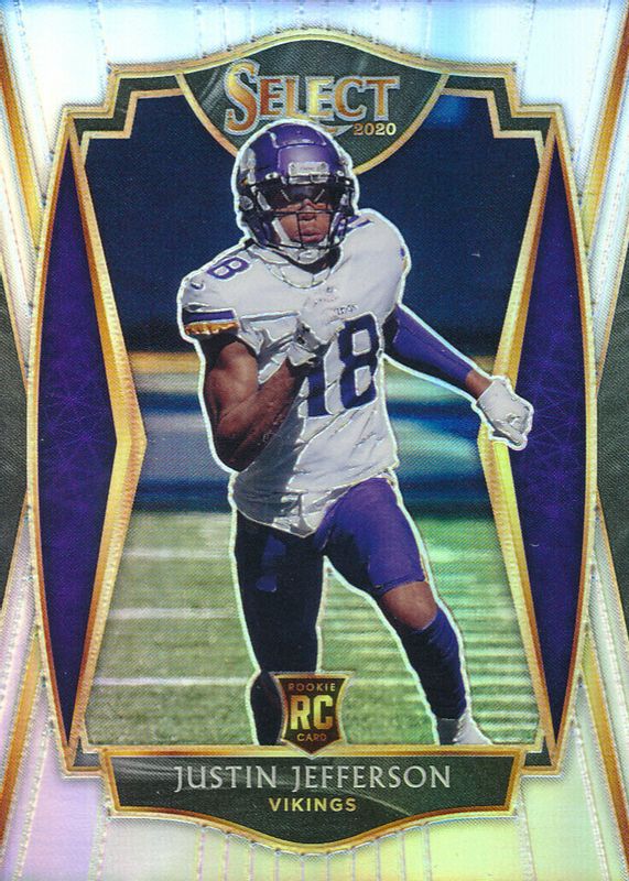 The Justin Jefferson 2020 Select #161 Premier Level Silver Rookie card in Raw condition has moved down -$0.50 (-3.2%) in the last 30 days and was last sold for $15.00 .
